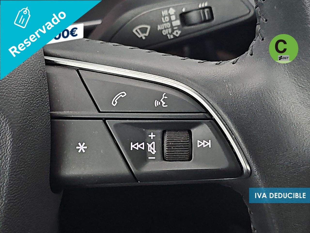 - Volante de cuero contorno deportivo en diseño de 3 radios con multifunción plus, achatado en la parte inferior