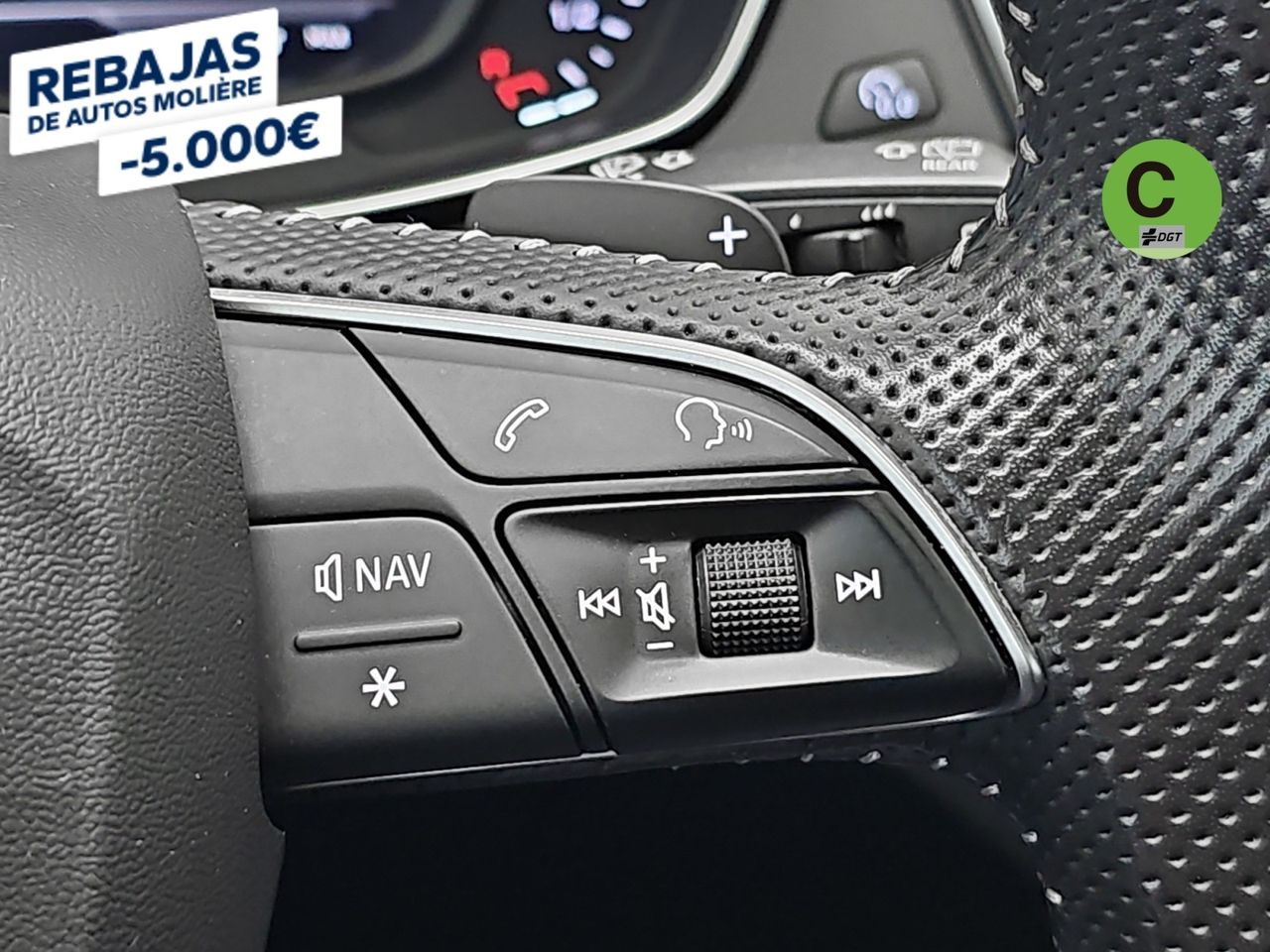 - Volante multi-función revestido de cuero ajustable en altura y en profundidad