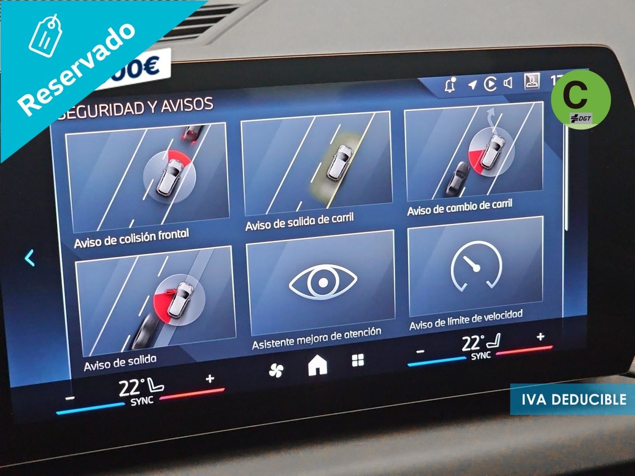 - Sistema de distancia de aparcamiento delanteros con sensor, sistema de distancia de aparcamiento traseros con sensor y cámara, sistema de distancia de aparcamiento en los lados con sensor