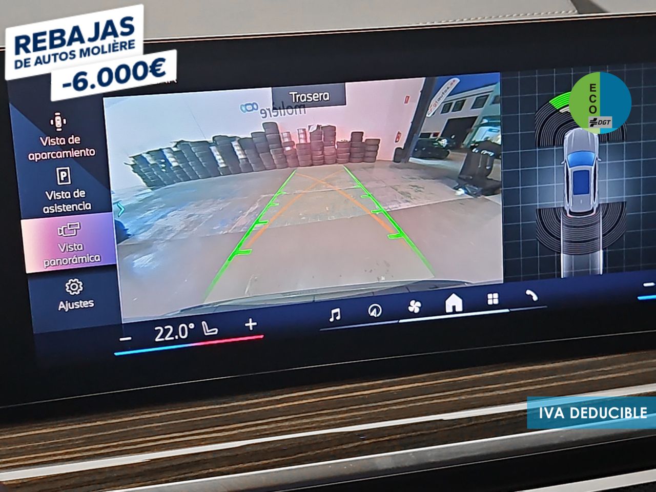 - Sensores de aparcamiento delanteros con sensor, sensores de aparcamiento traseros con sensor y cámara, sensores de aparcamiento en los lados con sensor