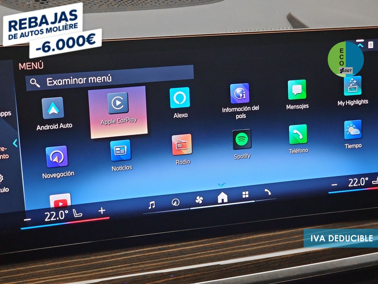 - Sistema de ventilación con pantalla digital, filtro de pólen y filtro de carbón activo controles en pantalla táctil y calefacción del motor