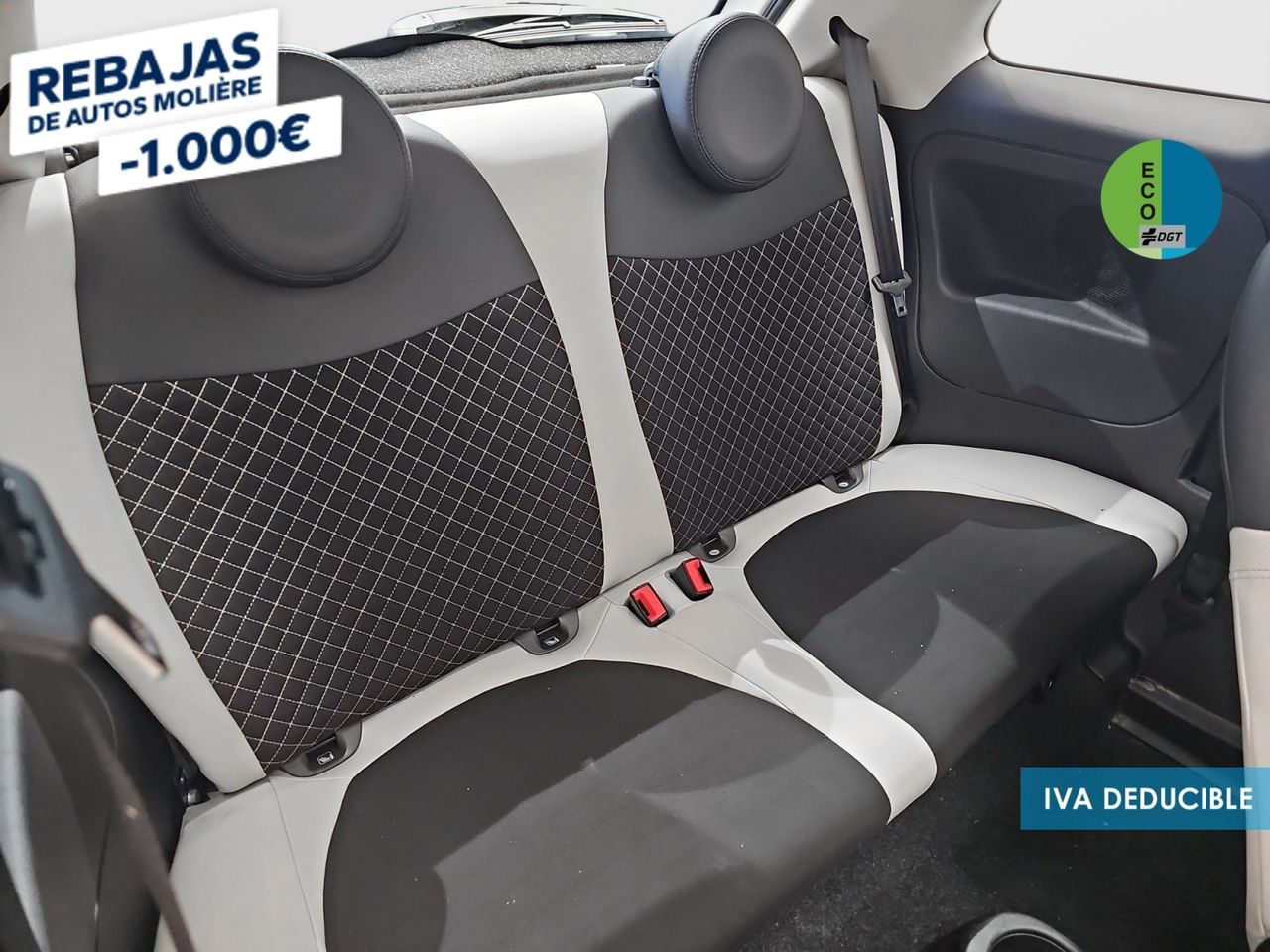 - Asientos traseros de dos plazas de tipo banco de orientación delantera con banqueta fija y respaldo abatible simétrico