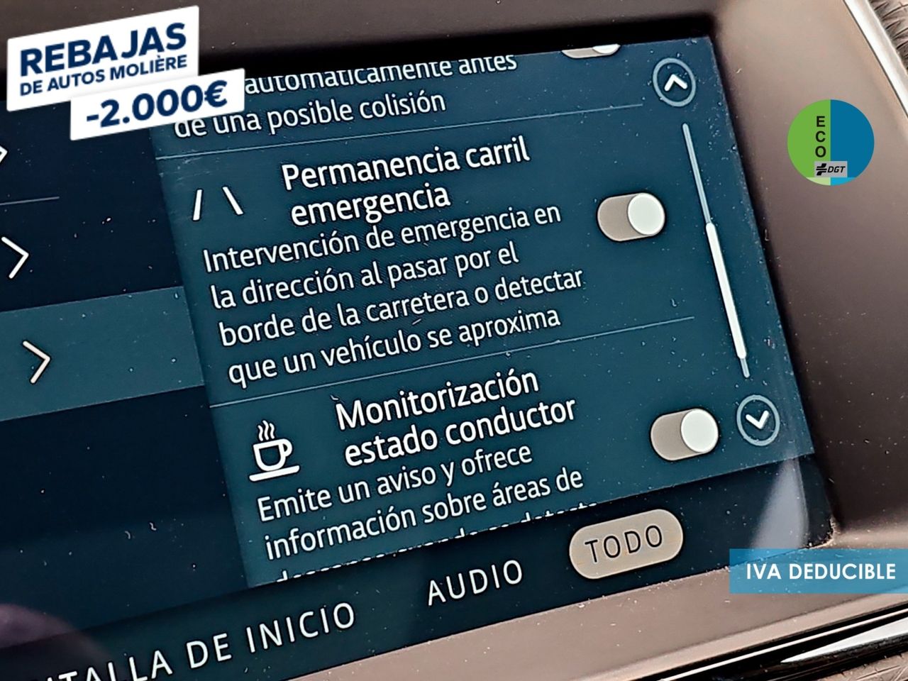 - Sistema de ventilación con pantalla digital y filtro de pólen controles en pantalla táctil y calefacción del motor
