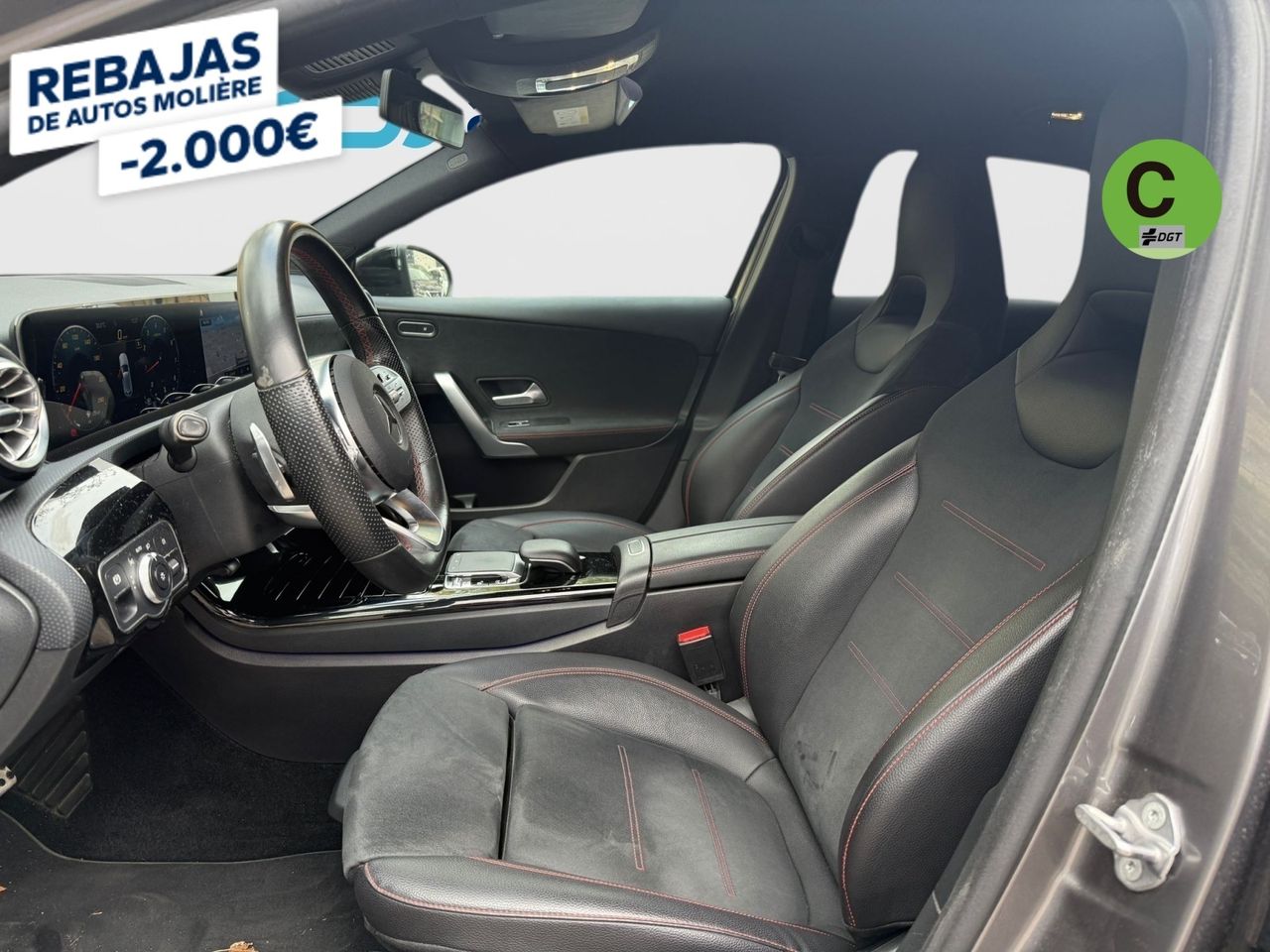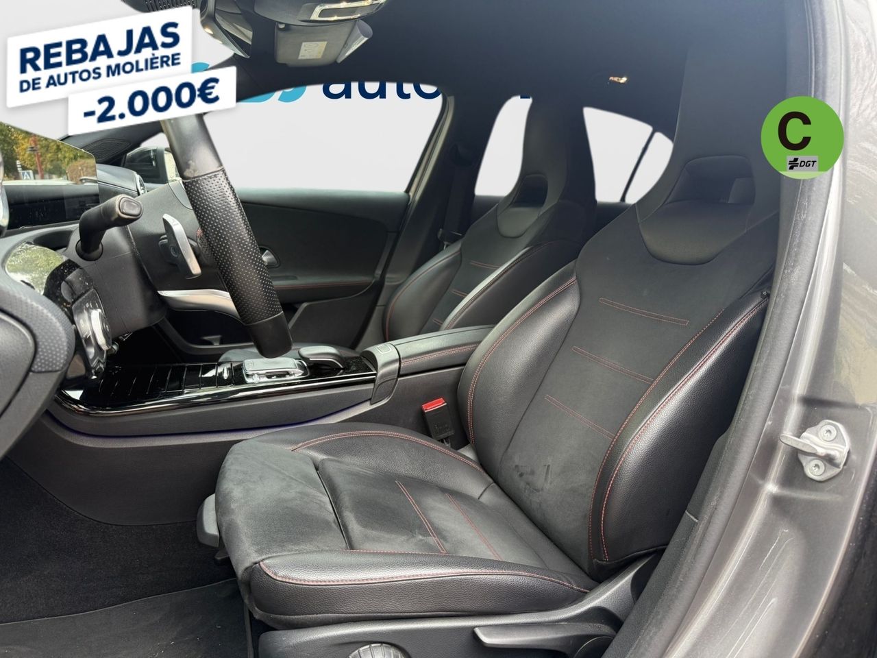 - Asientos de tela (material principal) y de cuero sintético (material secundario)
