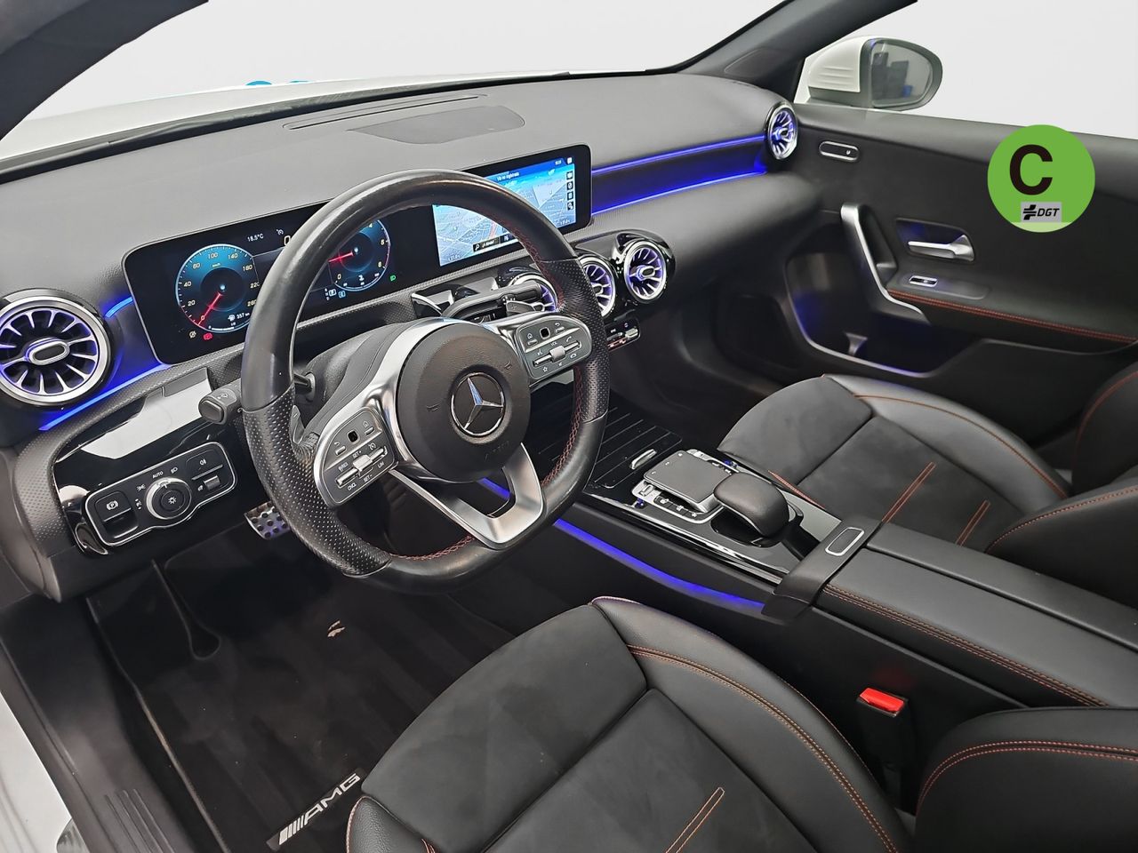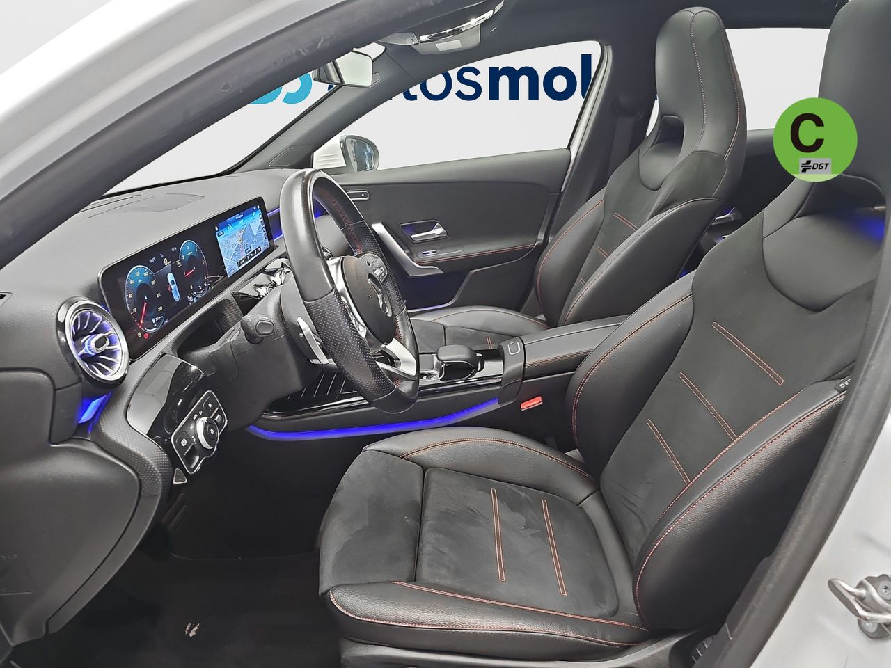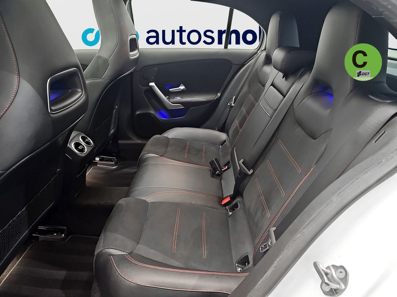 - Asientos de tela (material principal) y de cuero sintético (material secundario)