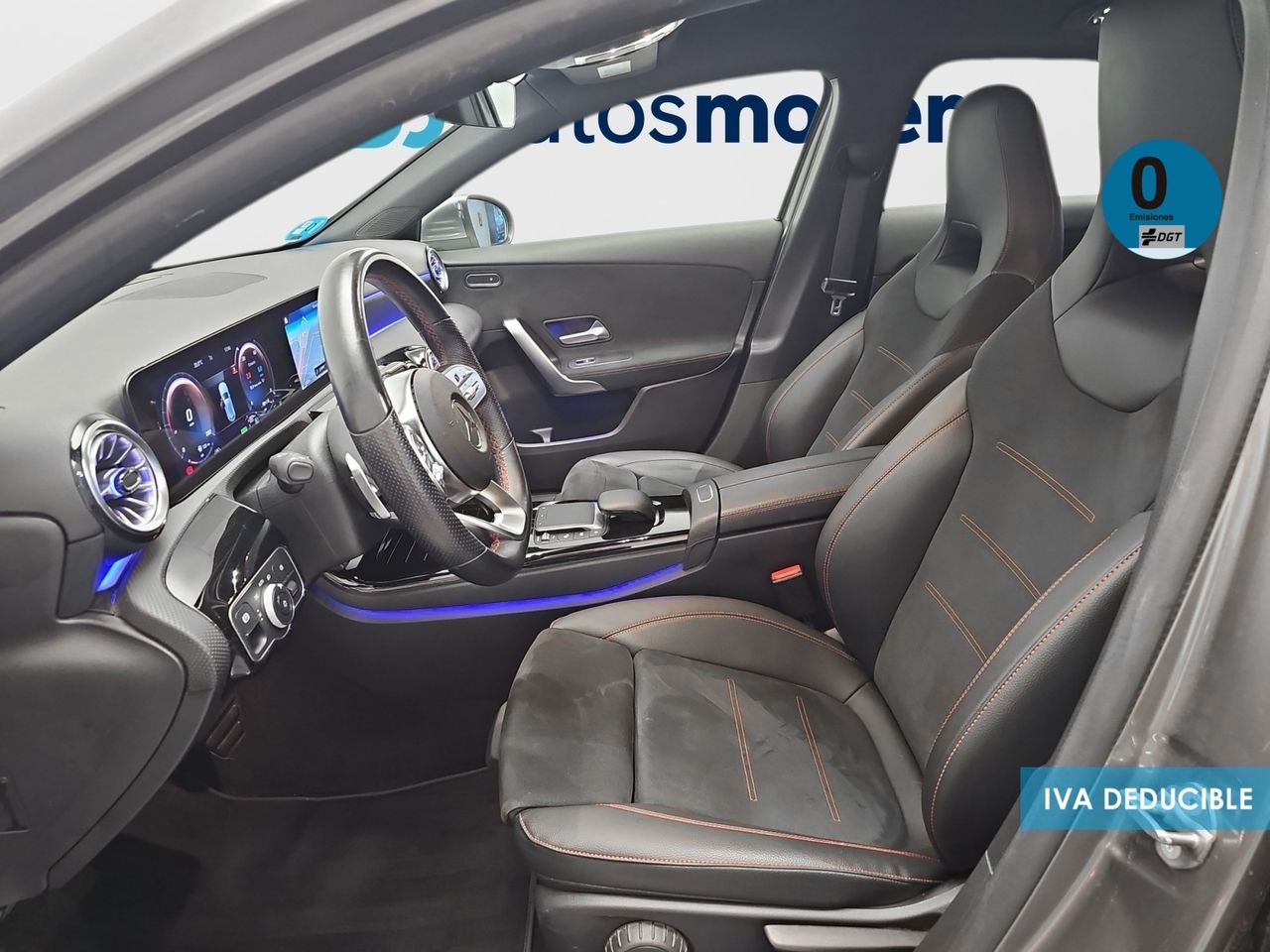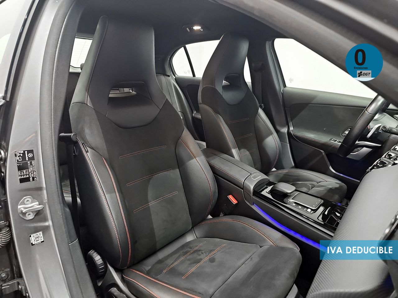 - Asientos de tela (material principal) y de cuero sintético (material secundario)