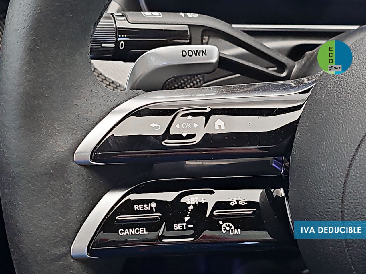 - Volante multi-función de aluminio y cuero ajustable eléctricamente, en altura y en profundidad controles táctiles