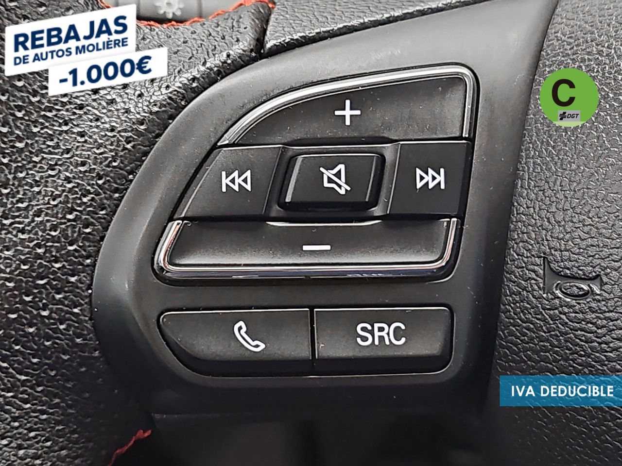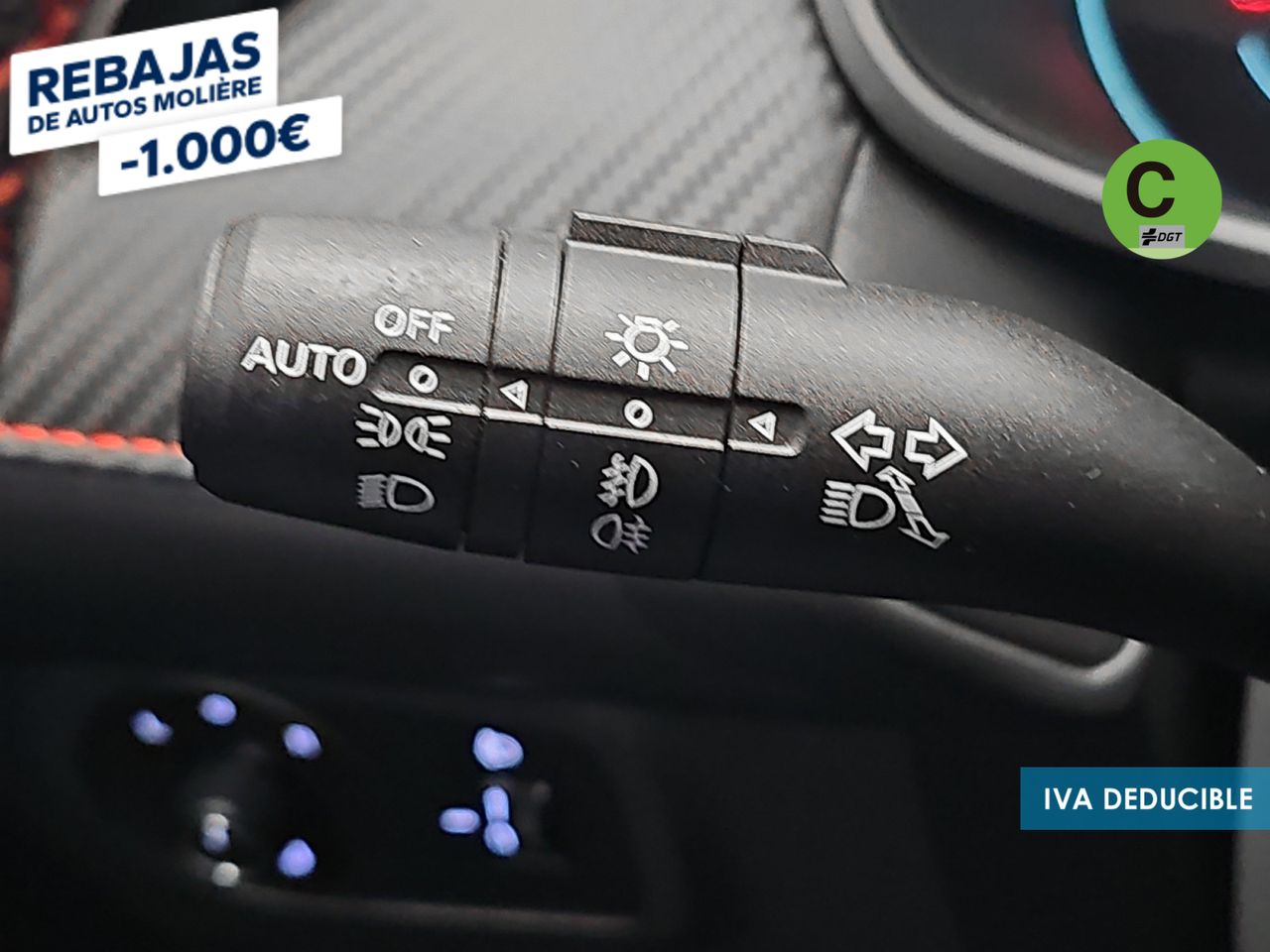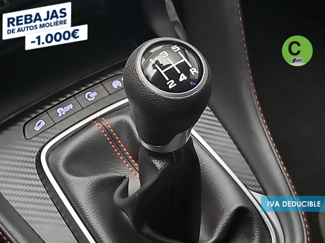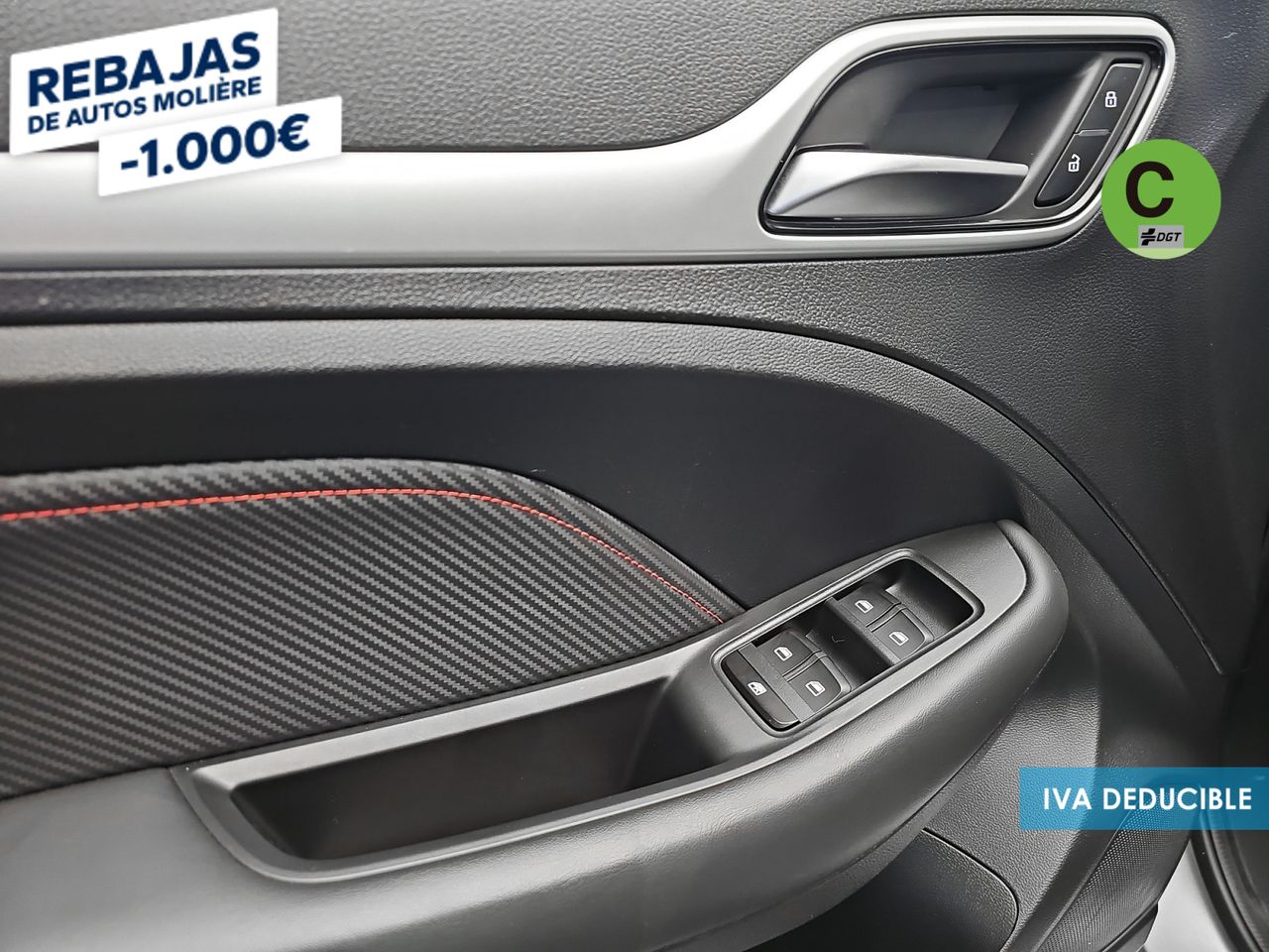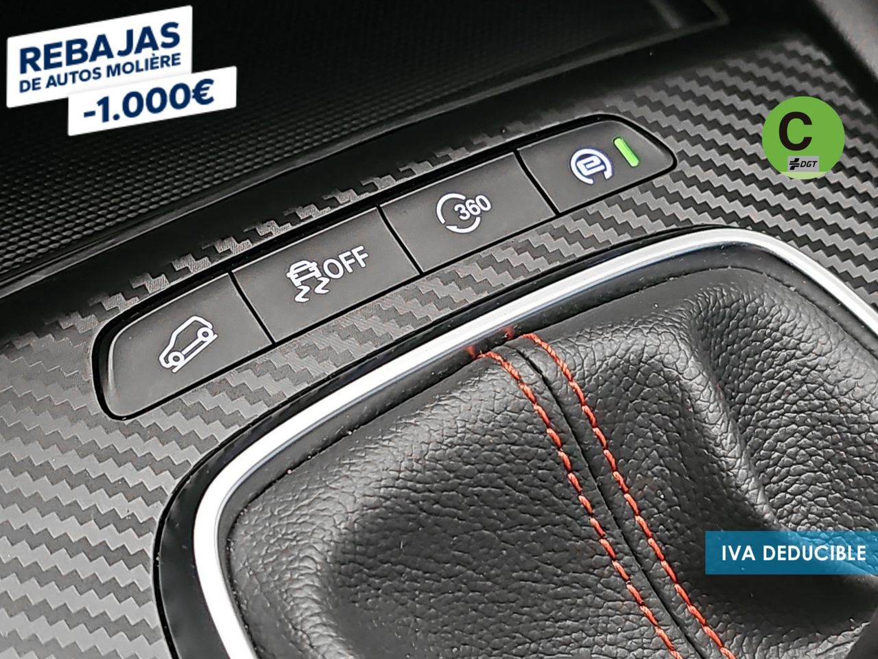 - Acabados de lujo: pomo de la palanca de cambios en símil aluminio, consola central en símil fibra de carbono, puertas en símil aluminio y tablero en símil aluminio