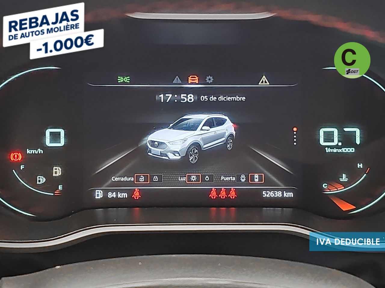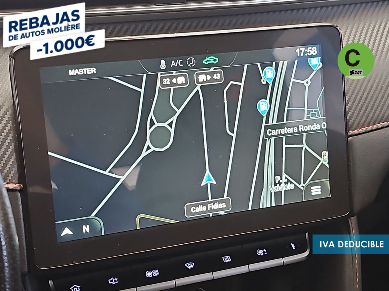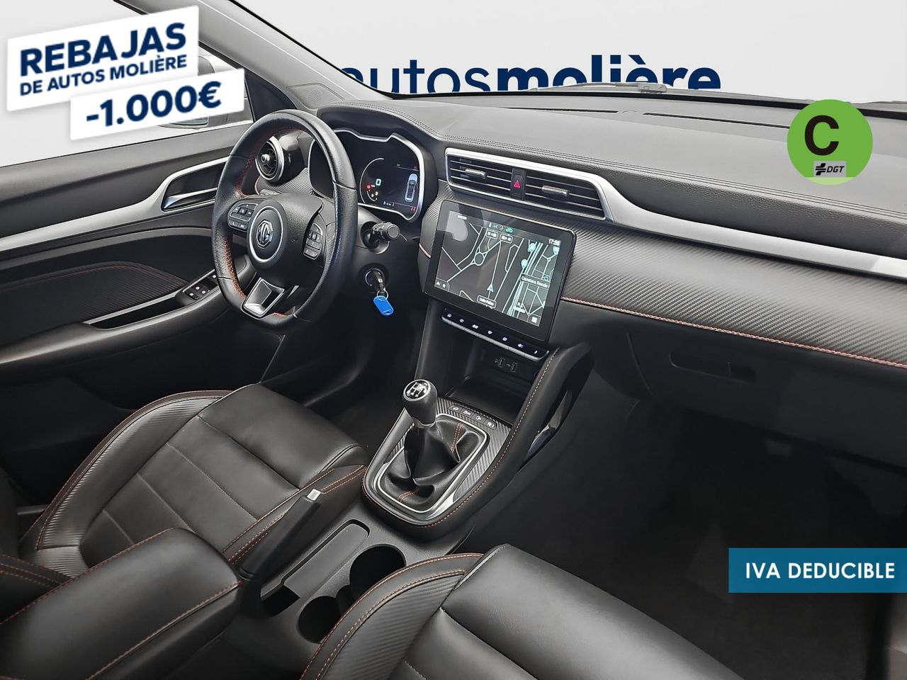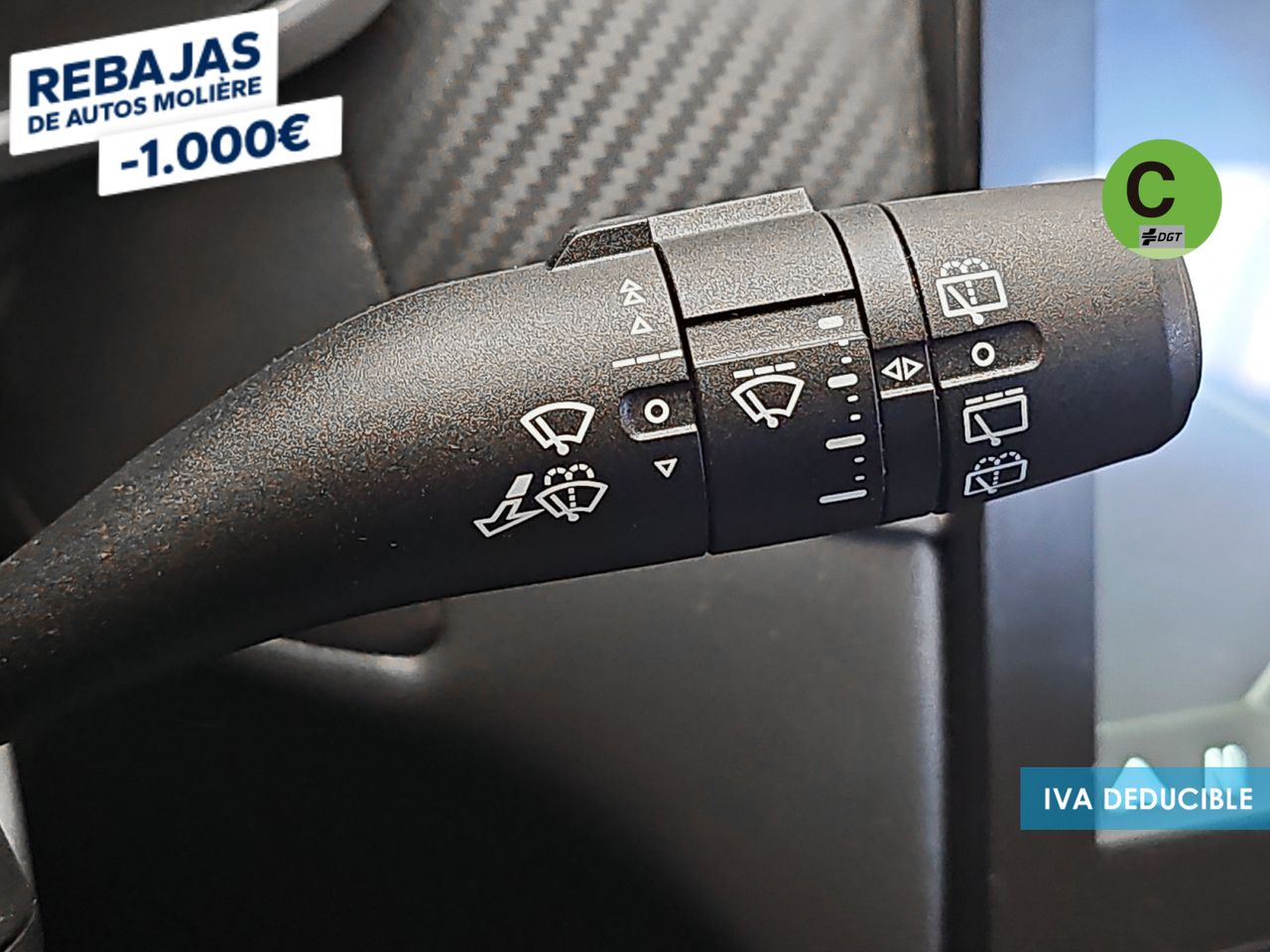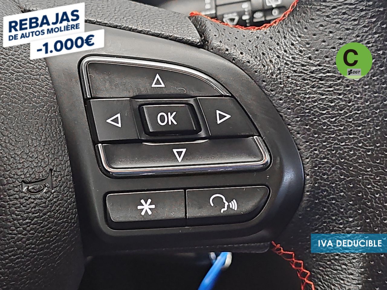 - Acabados de lujo: pomo de la palanca de cambios en símil aluminio, consola central en símil fibra de carbono, puertas en símil aluminio y tablero en símil aluminio