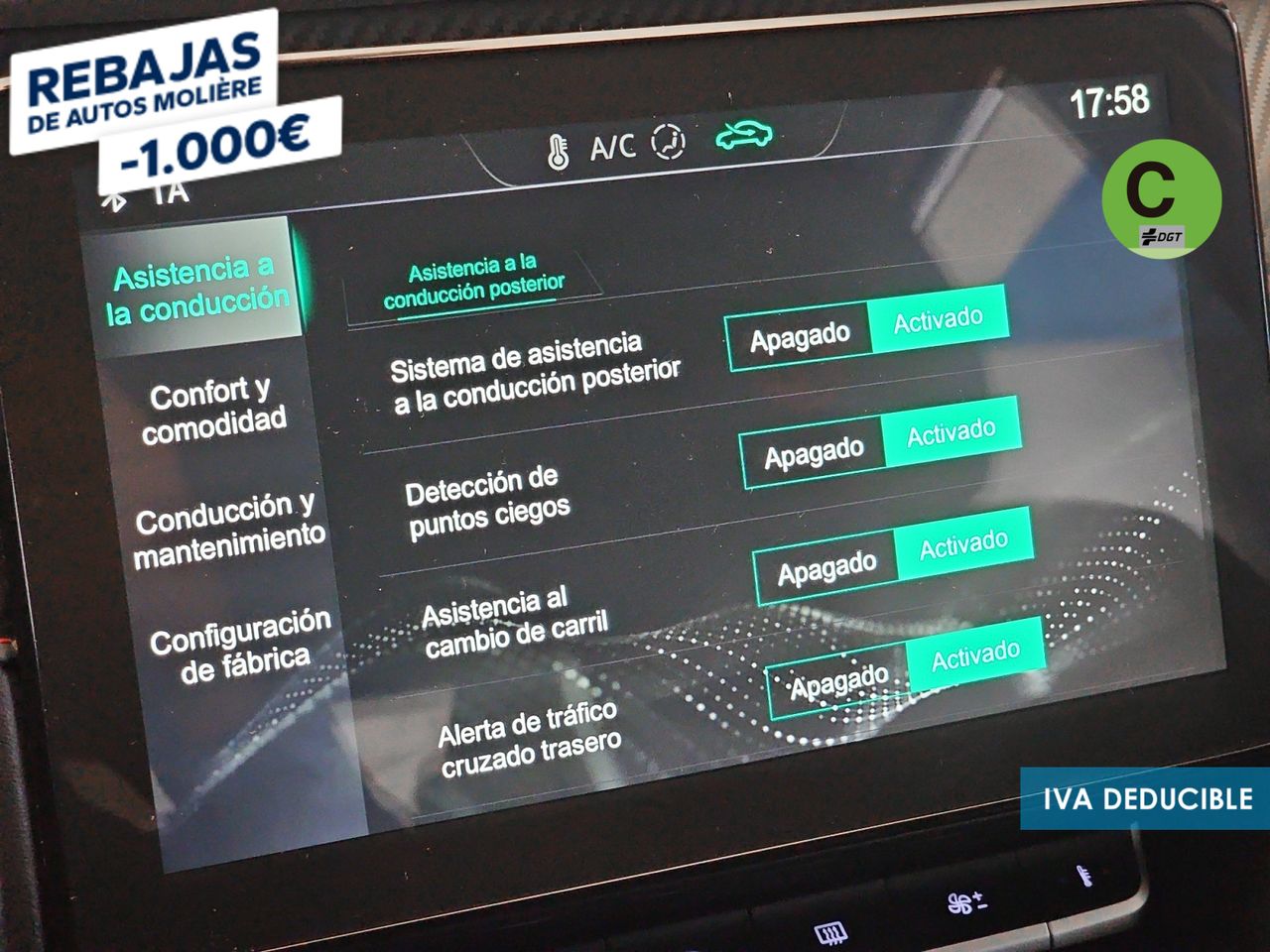 - Sistema de ventilación con pantalla digital, filtro de pólen y filtro de carbón activo controles en pantalla táctil y calefacción del motor