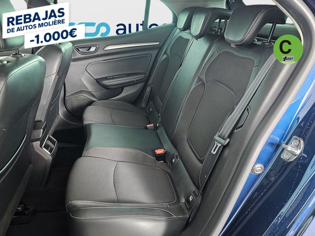- Asientos de tela (material principal) y de cuero sintético (material secundario)