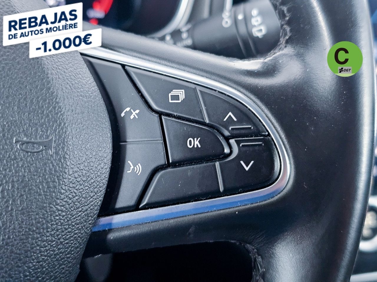 - Volante multi-función revestido de cuero ajustable en altura y en profundidad