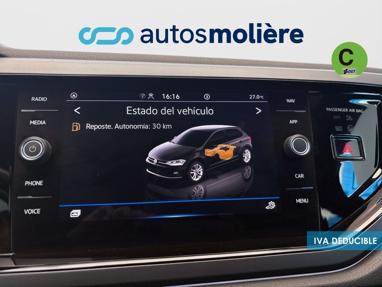 - Airbag al lado del conductor y del acompañante, sin airbag de rodilla, con desactivación para lado del acompañante